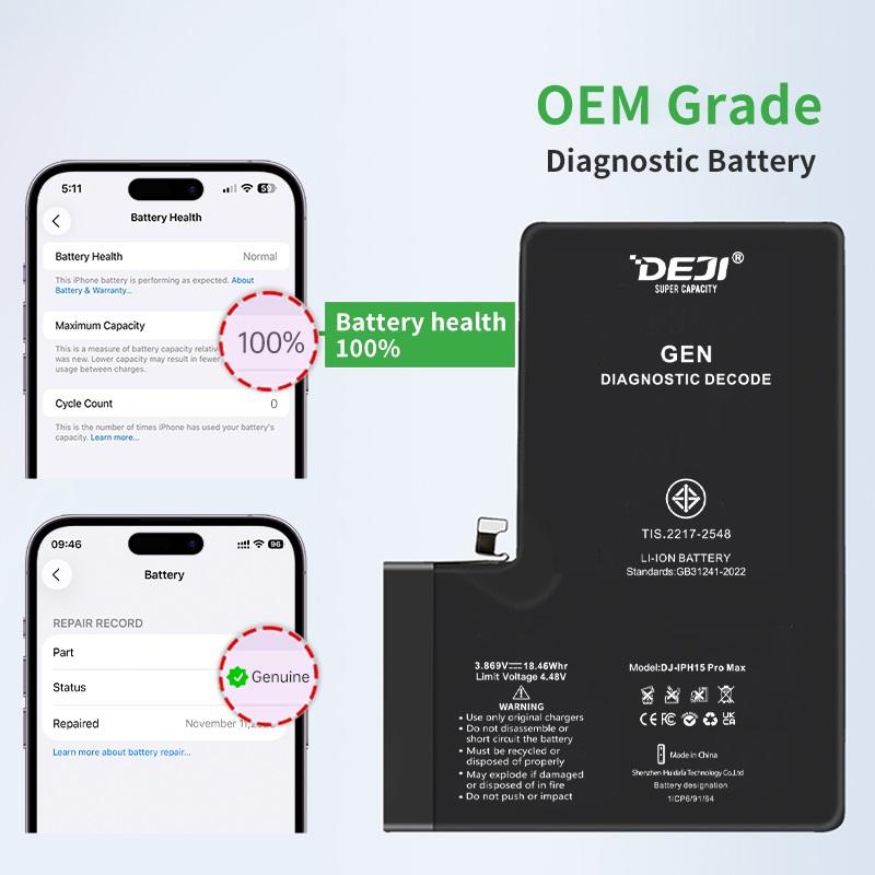 DEJI BATTERIA DE GRANDE CAPACITA (3400 mAh) PER APPLE IPHONE 15 PRO 6.1 (BATTERIA DECODIFICABILE GENUINA AUTODIAGNOSTICABILE) (QUANTITÀ MINIMA ORDINABILE: 10 PEZZI)