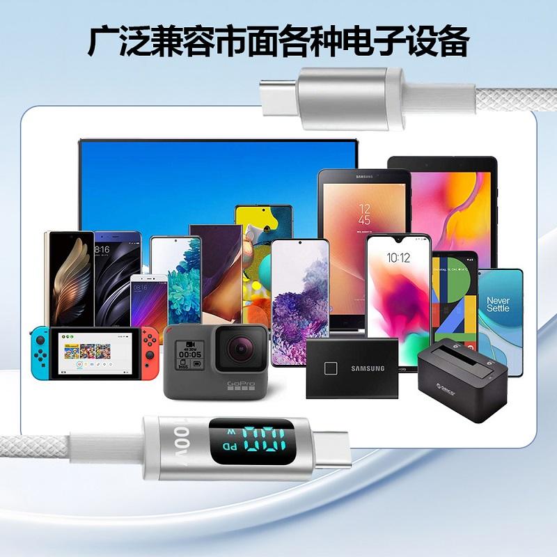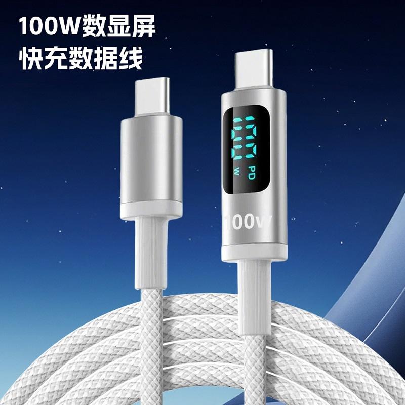 100W CAVO DATI INTRECCIATO DOPPIO TYPE-C / USB-C A TYPE-C / USB-C CON DISPLAY DIGITALE A RICARICA RAPIDA NERO 2M
