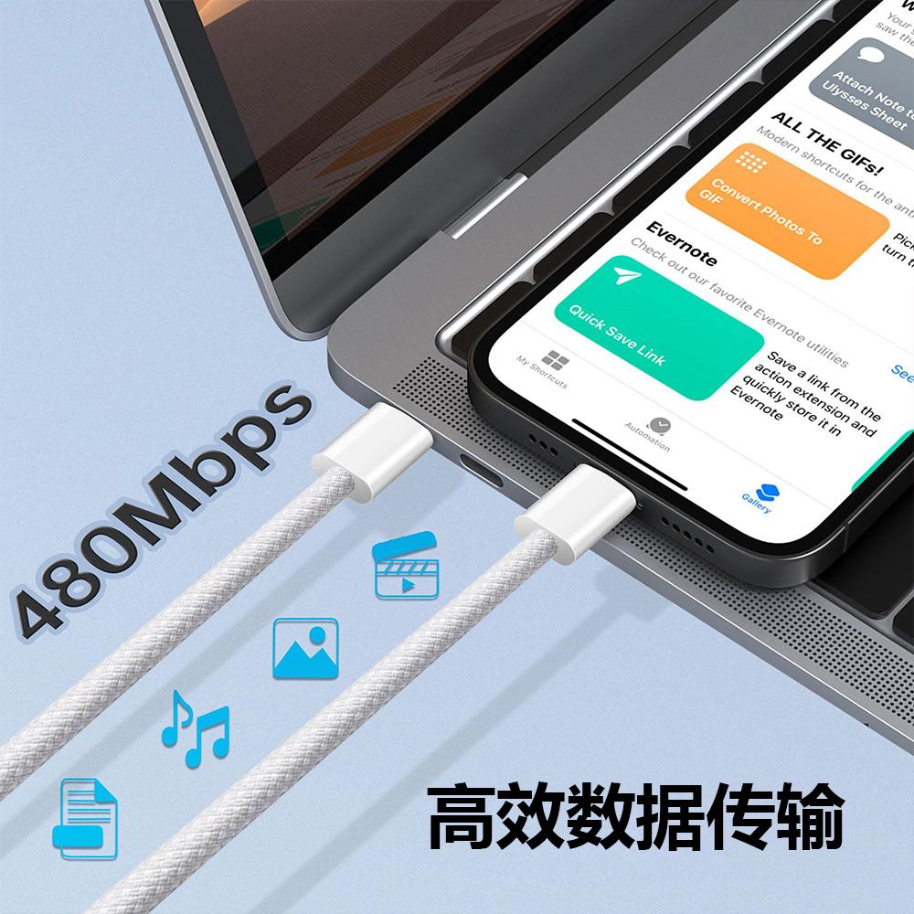 CAVO DATI DA 240W TYPE-C / USB-C A TYPE-C / USB-C CAVO DATI INTRECCIATO A RICARICA RAPIDA BIANCO LUNGHEZZA 2M