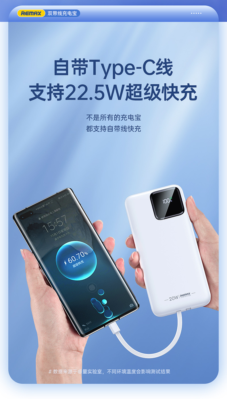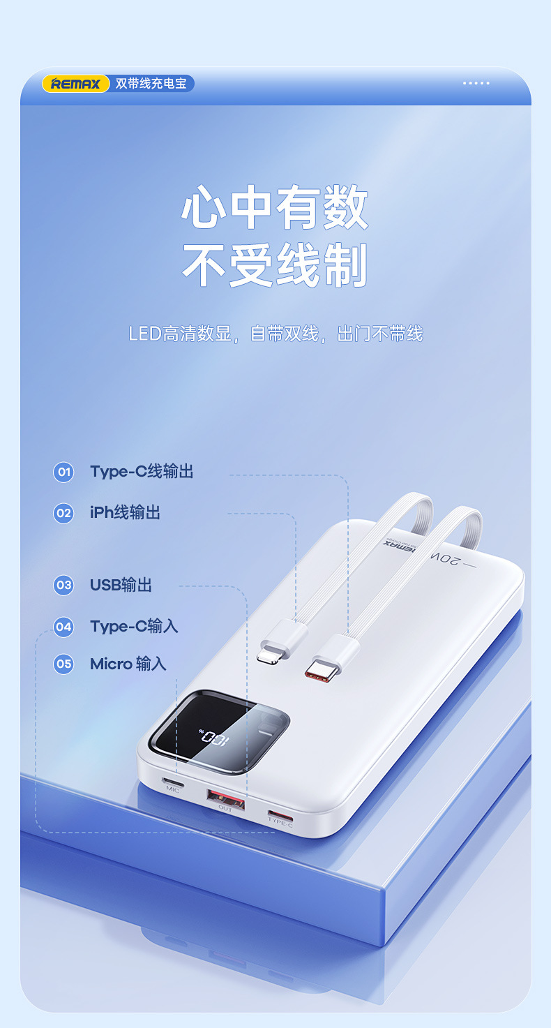 REMAX RPP-500 22.5W BANCA DI POTERE 10000MAH + DISPLAY DIGITALE + TYPE-C / LIGHTNING BIANCO