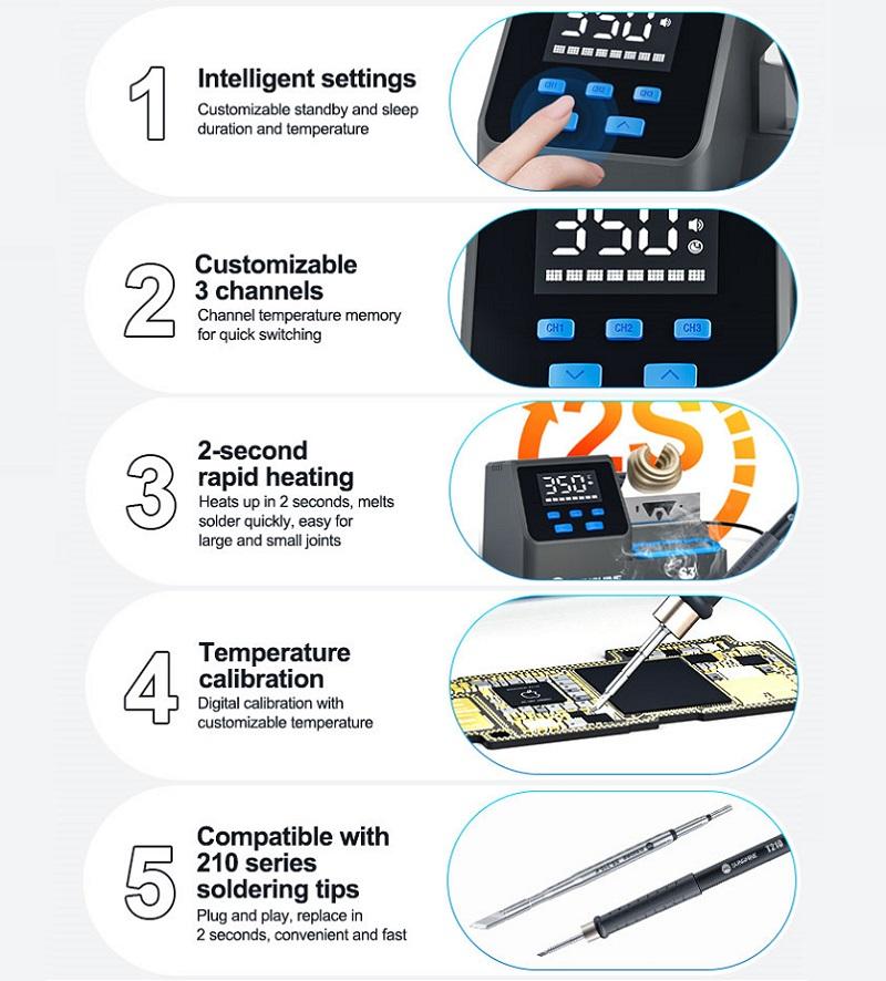 SUNSHINE S3 60W STAZIONE DI SALDATURA INTELLIGENTE SI RISCALDA IN 2 SECONDI TRE CANALI PERSONALIZZATI PER 210 MANIGLIA