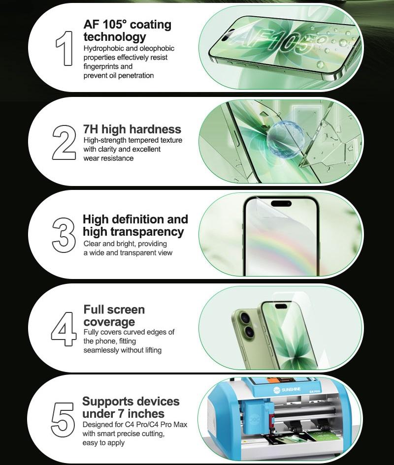RELIFE GF-7HA MEMBRANA IDROGEL AD ALTA DEFINIZIONE ANTIDEFLAGRANTE 25PCS 7.0 INCH UNIVERSALE PER SUNSHINE C4 PRO / C4 PRO MAX INTELLIGENT CUTTING MACCHINA
