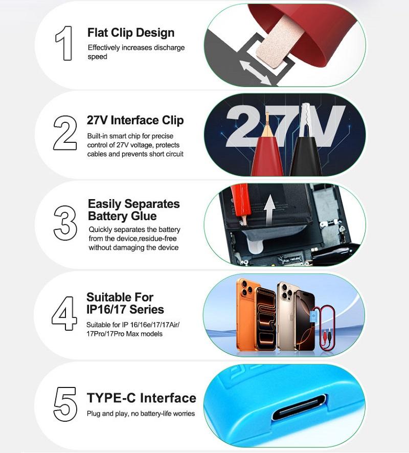 RELIFE RL-910 CAVO ADESIVO BATTERIA A RIMOZIONE RAPIDA PER APPLE IPHONE 16 / 16E / 17 / 17 AIR / 17 PRO / 17 PRO MAX