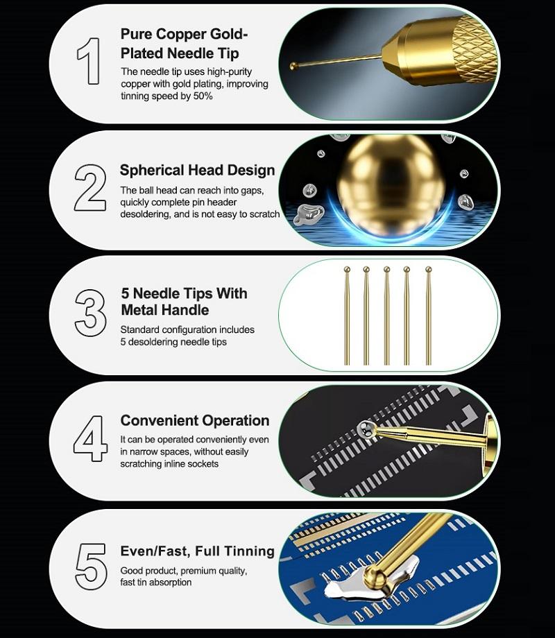 RELIFE TO6 SET DI AGHI DISSALDANTI IN RAME PURO CON PLACCATURA IN ORO PER LA DISSALDATURA DI CHIP DI PACCHETTI BGA