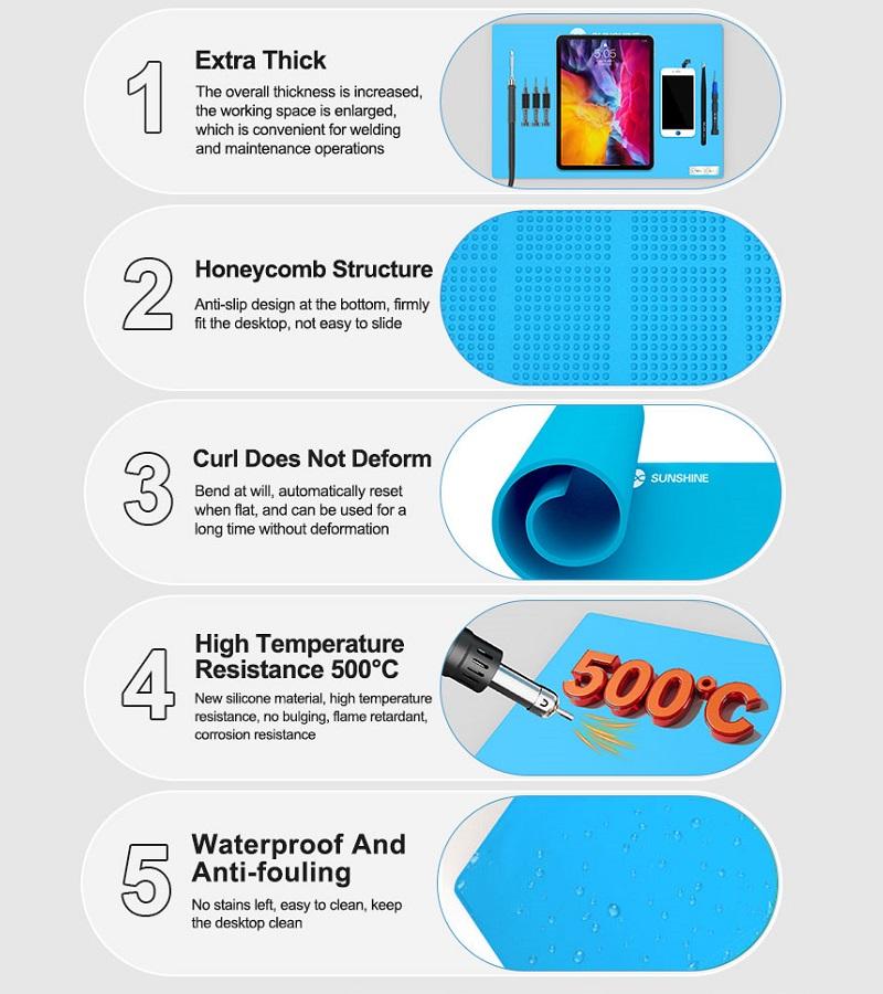 SUNSHINE SS-004F CUSCINETTO ISOLANTE AVANZATO RESISTENTE ALLE ALTE TEMPERATURE PER CENTRI DI RIPARAZIONE ELETTRONICA BLU
