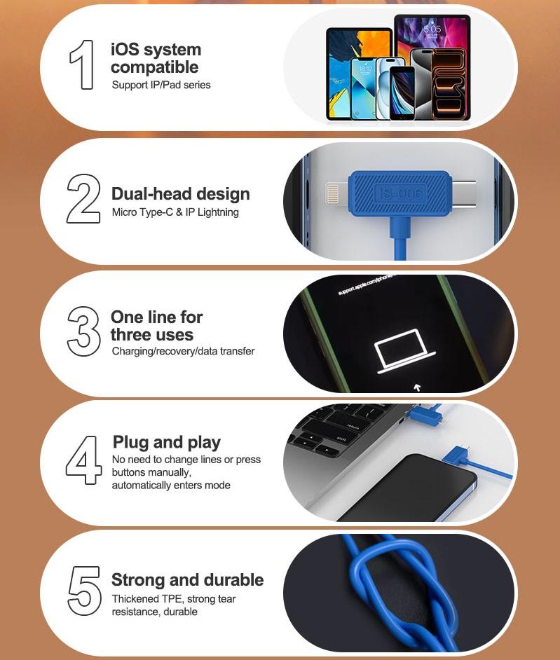 ISOFT IS-006 IP DOPPIA TESTA RIPARARE IL CAVO DATI (MICRO TYPE-C / IP LIGHTNING) V2.0 PER IPHONE 6 / 7 / 8 / X / 11 / 12 / 13 / 14 / 15 / 16 / 17 SERIES / IPAD SERIES